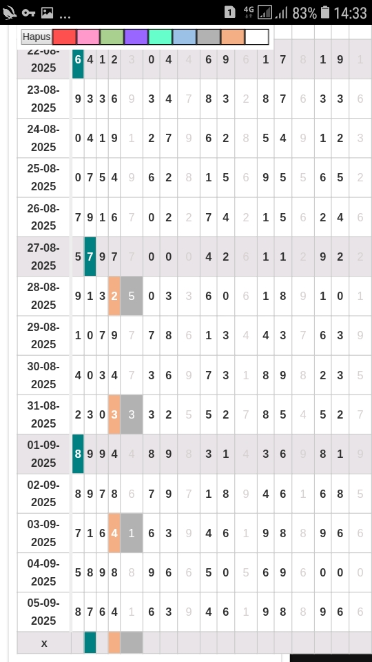 | Rumus Kontrol 4 berdasarkan kepala harian | 1245670 1345890 |