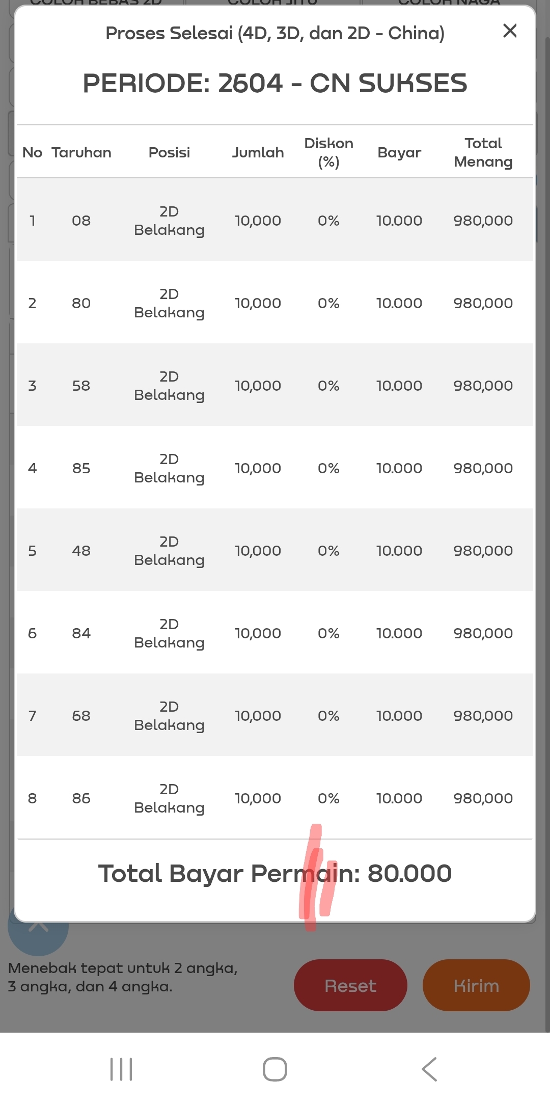 | Angka Ikut berdasarkan Kalender Jawa | 67890 |