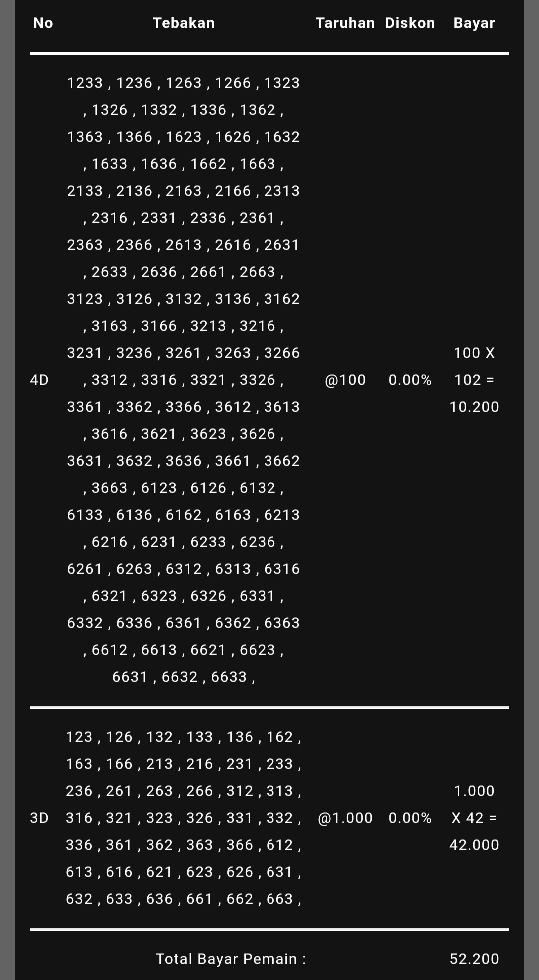 | Rumus Angka Mati berdasarkan kepala harian | 04 05 06 07 08 09 10 15 16 17 18 21 26 28 29 30 31 32 41 42 43 52 53 54 64 65 72 73 75 76 83 84 86 93 94 95 96 97 98 |