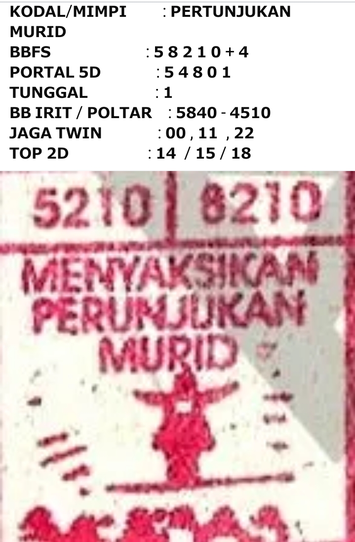 Prediksi Ini Berubah secara otomatis sesuai hari dan result pasaran masing-masing. Untuk melihat prediksi sebelumnya klik tombol nomor hitam diatas