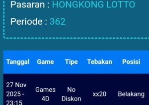Prediksi Hongkong Lotto Sabtu, 17-01-2026 Merupakan Prediksi Otomatis yang menggabungkan Metode Kalender Togel Dengan LN Generator yang akurasi prediksinya sudah kita ketahui bersama. Jadi harap Maklum Jika kadang meleset Prediksi Hongkong Lotto kita. Jadikan ini sebagai perbandingan saja dan tetap Utamakan karya sendiri
