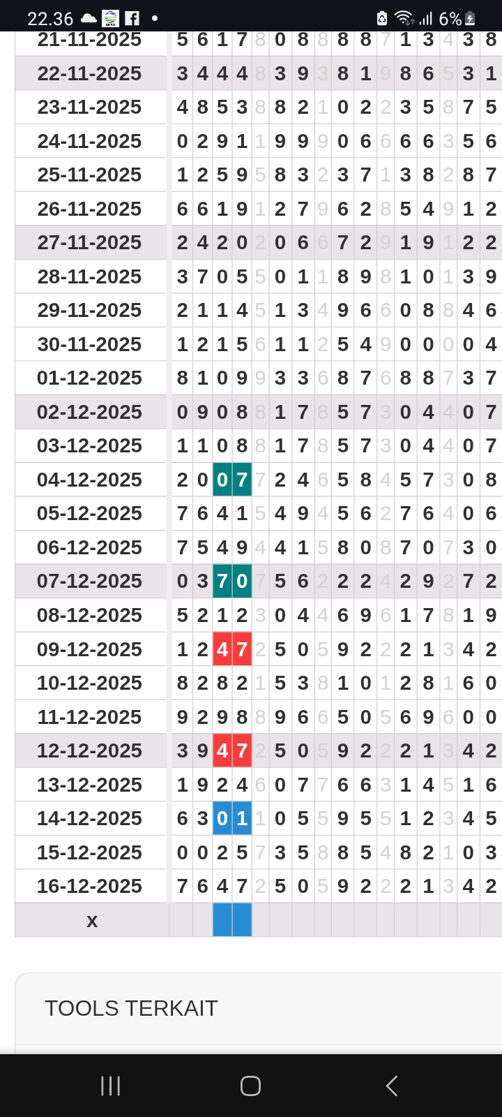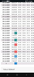 | Rumus Angka Mati berdasarkan kepala harian | 04 06 07 09 10 18 19 20 21 29 30 31 32 42 43 50 51 53 54 61 62 64 71 72 73 74 75 76 82 83 84 85 86 87 93 94 95 96 98 |