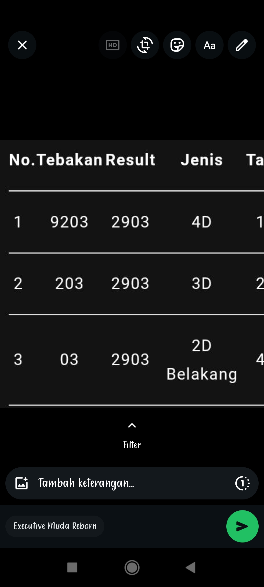| Rumus Kontrol 4 berdasarkan kepala harian | 2345890 1236789 |