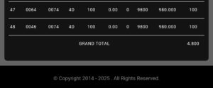 | Rumus Kontrol 2 berdasarkan Ekor harian | 1354802 2345689 9357048 |