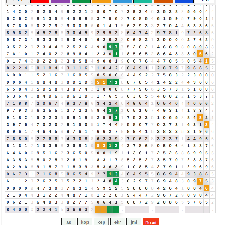 | Rumus Angka Mati berdasarkan kepala harian | 04 05 06 07 09 10 15 17 18 20 21 29 30 31 32 41 42 43 53 54 61 62 64 65 72 73 75 82 83 84 85 86 87 93 94 95 96 97 98 |