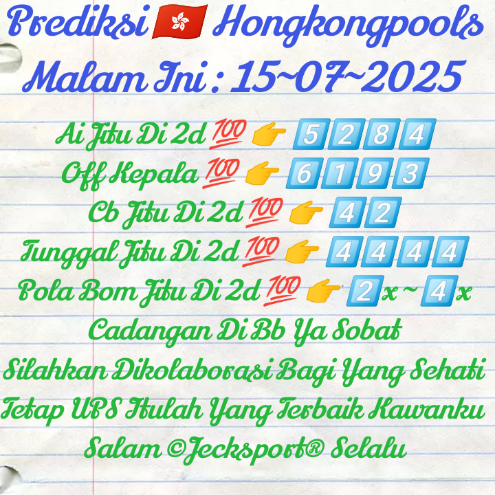 Prediksi HK Kamis, 15-01-2026 Merupakan Prediksi Otomatis yang menggabungkan Metode Kalender Togel Dengan LN Generator yang akurasi prediksinya sudah kita ketahui bersama. Jadi harap Maklum Jika kadang meleset Prediksi HK kita. Jadikan ini sebagai perbandingan saja dan tetap Utamakan karya sendiri