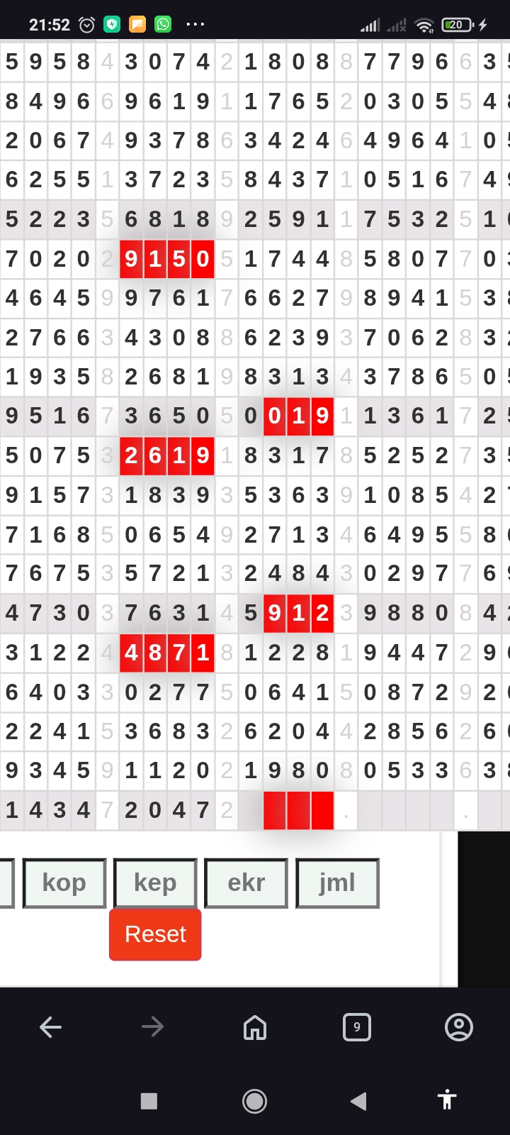 | Rumus Kontrol 2 berdasarkan Ekor harian | 0243791 1234578 8531024 |