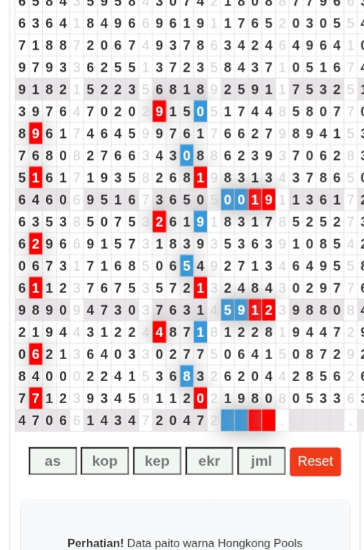 | Rumus Angka Mati berdasarkan kepala harian | 04 05 06 07 09 10 15 17 18 20 21 29 30 31 32 41 42 43 53 54 61 62 64 65 72 73 75 82 83 84 85 86 87 93 94 95 96 97 98 |
