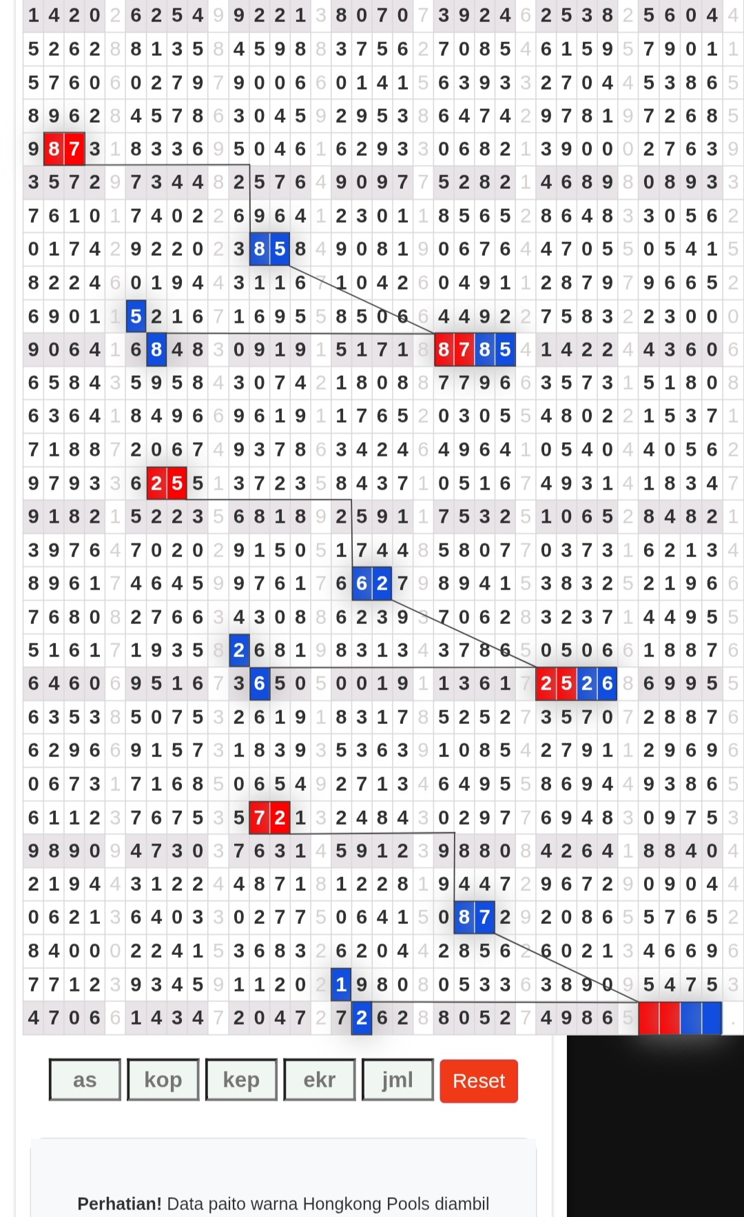 | Rumus Angka Mati berdasarkan kepala harian | 04 05 06 07 09 10 15 17 18 20 21 29 30 31 32 41 42 43 53 54 61 62 64 65 72 73 75 82 83 84 85 86 87 93 94 95 96 97 98 |