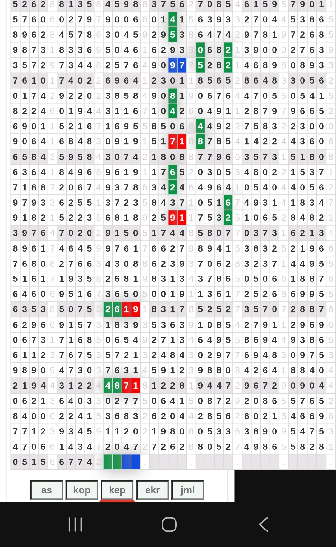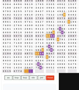 | Rumus Angka Mati berdasarkan kepala harian | 05 06 08 09 16 17 19 20 21 26 27 28 29 30 31 32 37 38 39 40 41 43 48 49 51 52 54 59 63 64 65 74 75 76 85 86 87 97 98 |