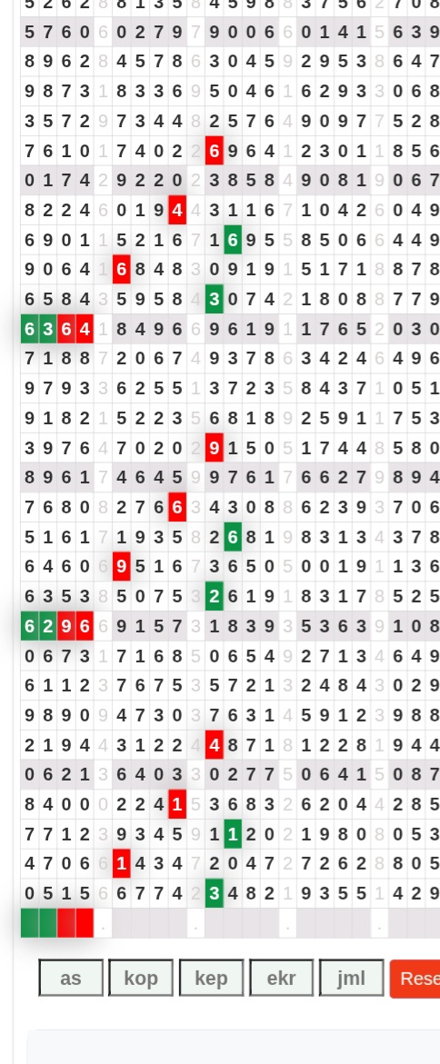 | Rumus Angka Mati berdasarkan kepala harian | 07 08 09 10 19 20 21 27 28 31 38 39 40 41 42 43 48 49 50 51 52 53 54 59 60 61 62 63 65 71 73 74 76 85 86 87 96 97 98 |