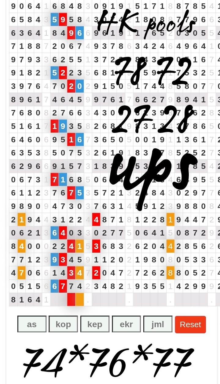 | Rumus Angka Mati berdasarkan kepala harian | 07 08 09 10 19 20 21 27 28 31 38 39 40 41 42 43 48 49 50 51 52 53 54 59 60 61 62 63 65 71 73 74 76 85 86 87 96 97 98 |