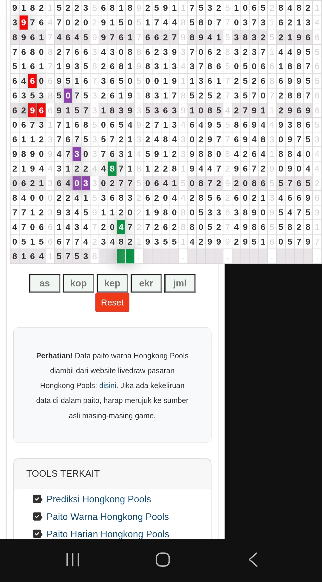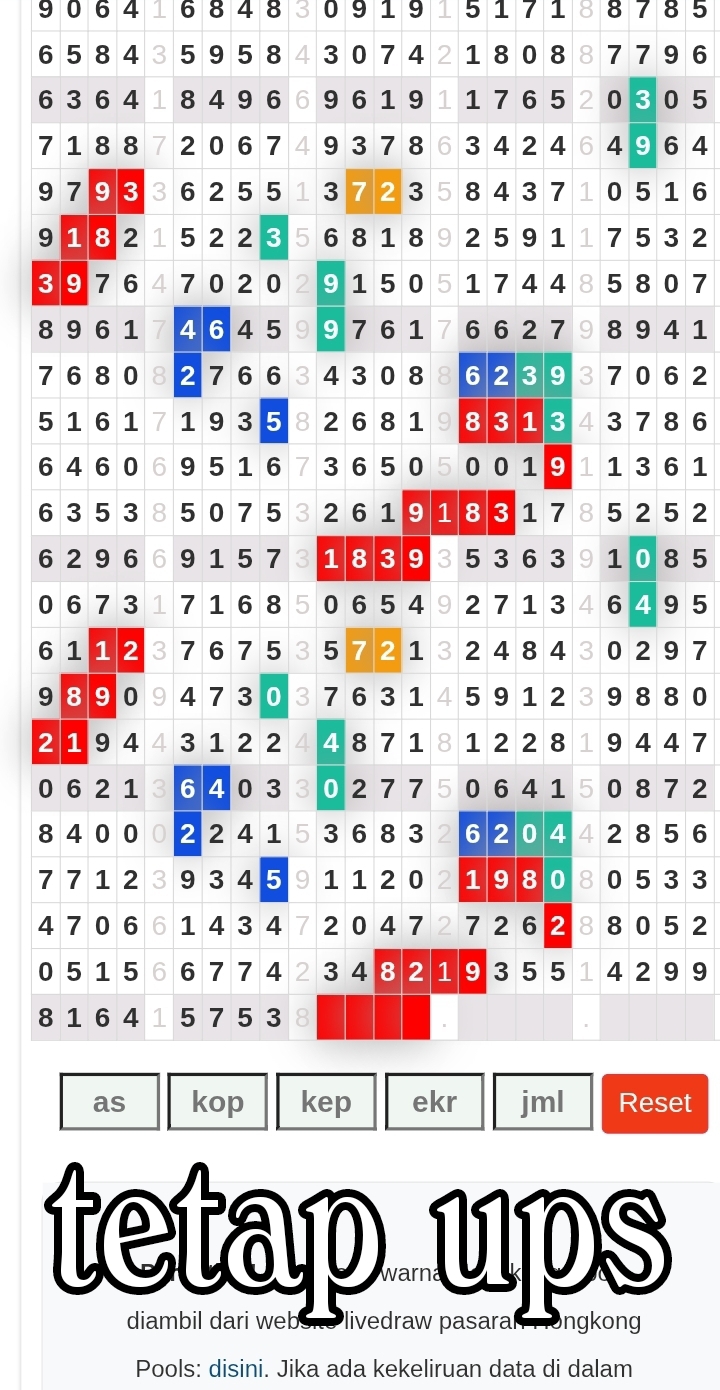 | Rumus Angka Mati berdasarkan kepala harian | 07 08 09 10 19 20 21 27 28 31 38 39 40 41 42 43 48 49 50 51 52 53 54 59 60 61 62 63 65 71 73 74 76 85 86 87 96 97 98 |