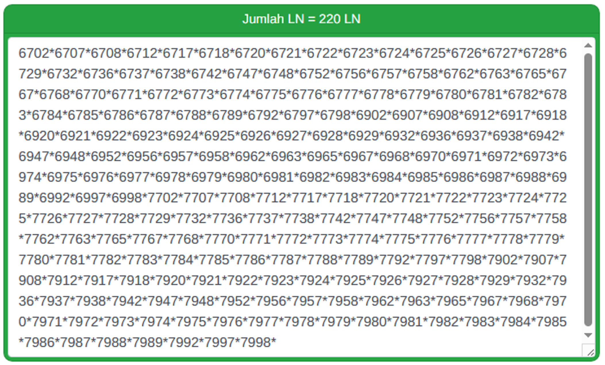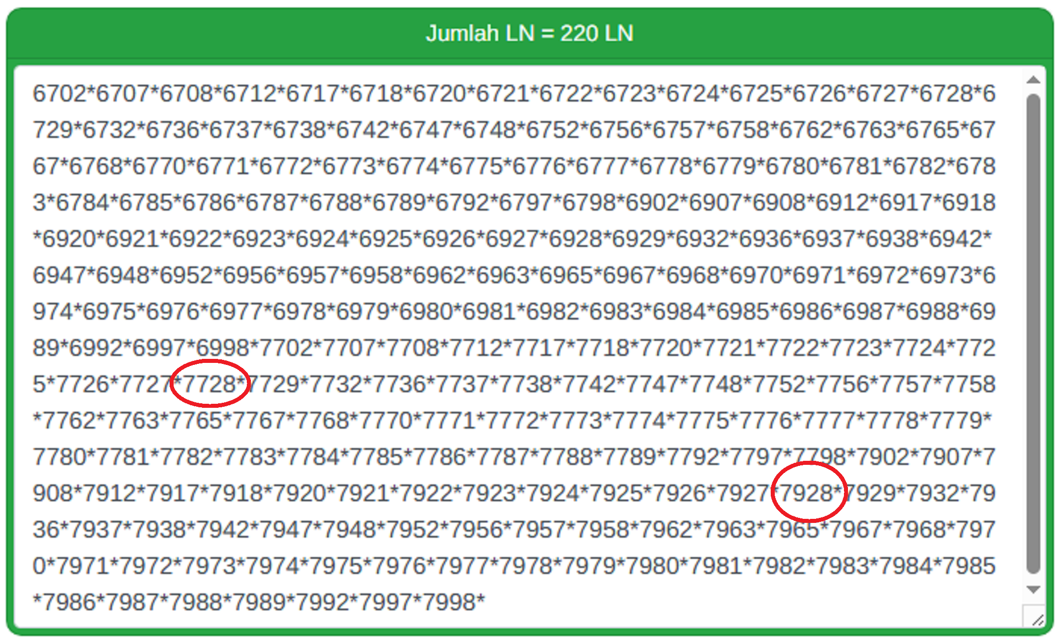 | Rumus Kontrol 2 berdasarkan Ekor harian | 5798246 5678902 3579286 |