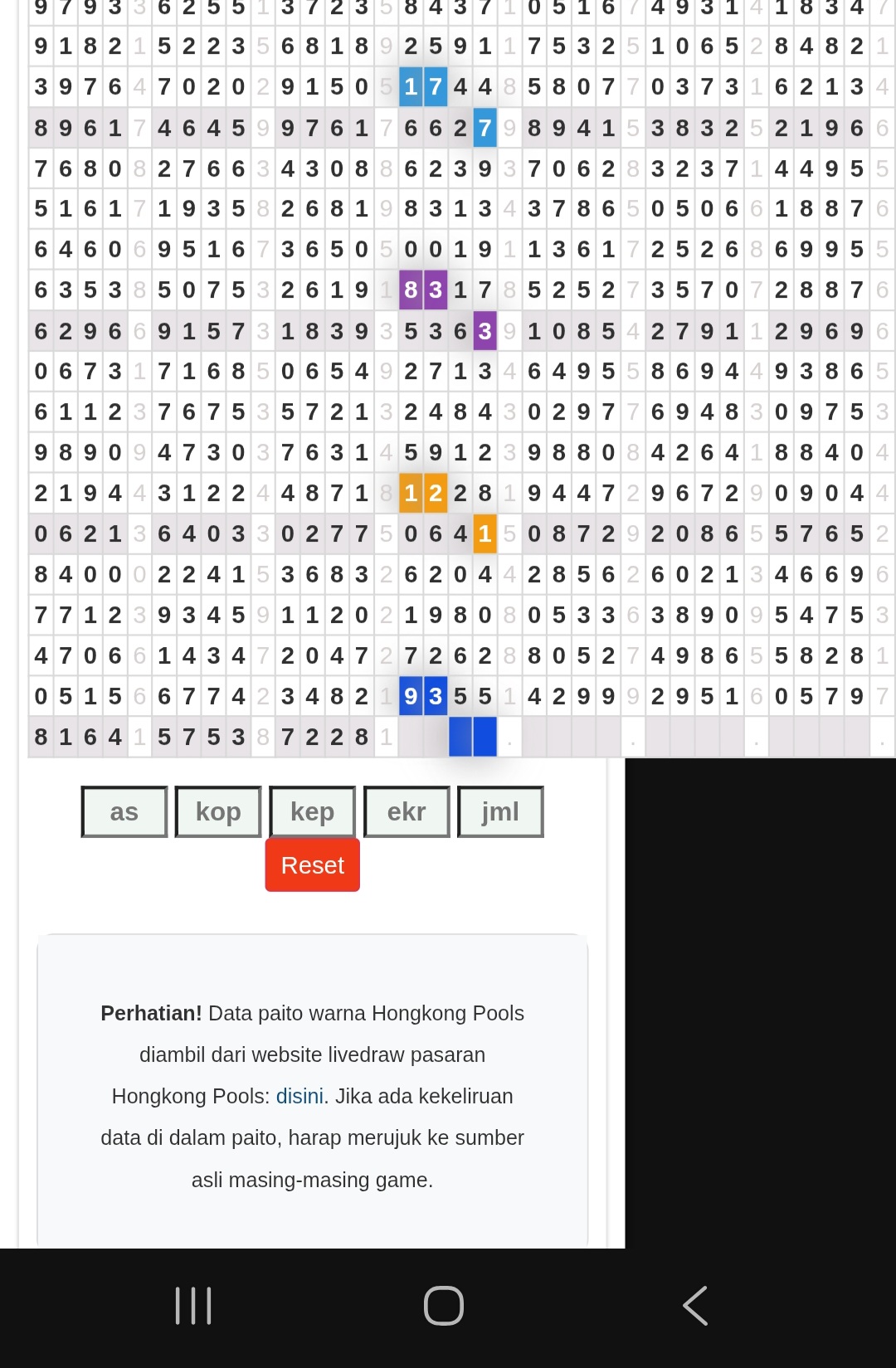 | Rumus Angka Mati berdasarkan kepala harian | 07 08 09 10 19 20 21 27 28 31 38 39 40 41 42 43 48 49 50 51 52 53 54 59 60 61 62 63 65 71 73 74 76 85 86 87 96 97 98 |