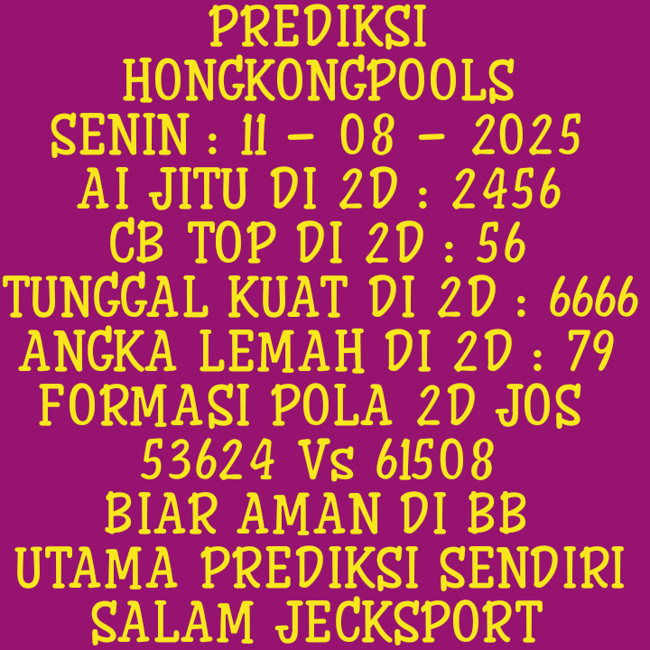 Prediksi HK Senin, 11-08-2025