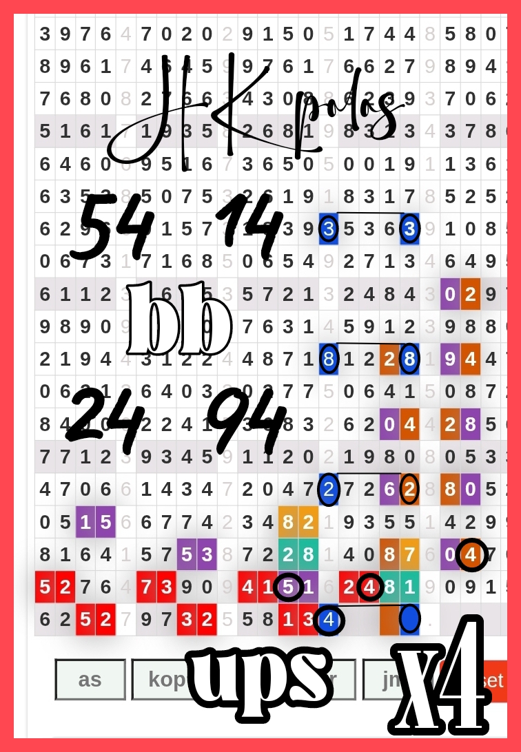 | Rumus Angka Mati berdasarkan kepala harian | 04 05 06 07 08 09 10 15 16 17 18 19 21 26 27 28 29 30 32 37 39 41 42 43 52 53 54 63 64 65 75 76 83 84 86 87 94 95 97 |
