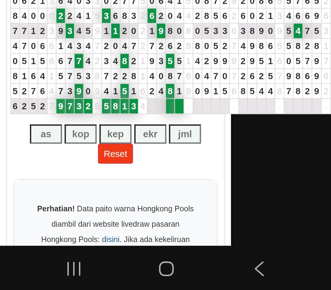 | Rumus Angka Mati berdasarkan kepala harian | 07 08 09 10 18 19 20 21 31 32 38 39 40 42 49 50 51 52 53 54 59 60 61 62 63 64 65 71 72 73 74 76 82 84 85 87 96 97 98 |