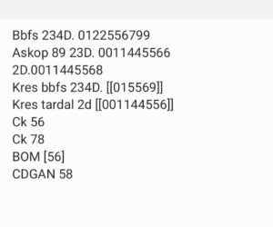 | Rumus Kontrol 4 berdasarkan kepala harian | 1456890 2345789 |