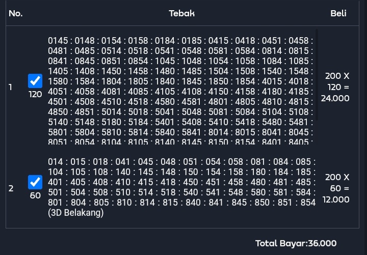 Prediksi Ini Berubah secara otomatis sesuai hari dan result pasaran masing-masing. Untuk melihat prediksi sebelumnya klik tombol nomor hitam diatas