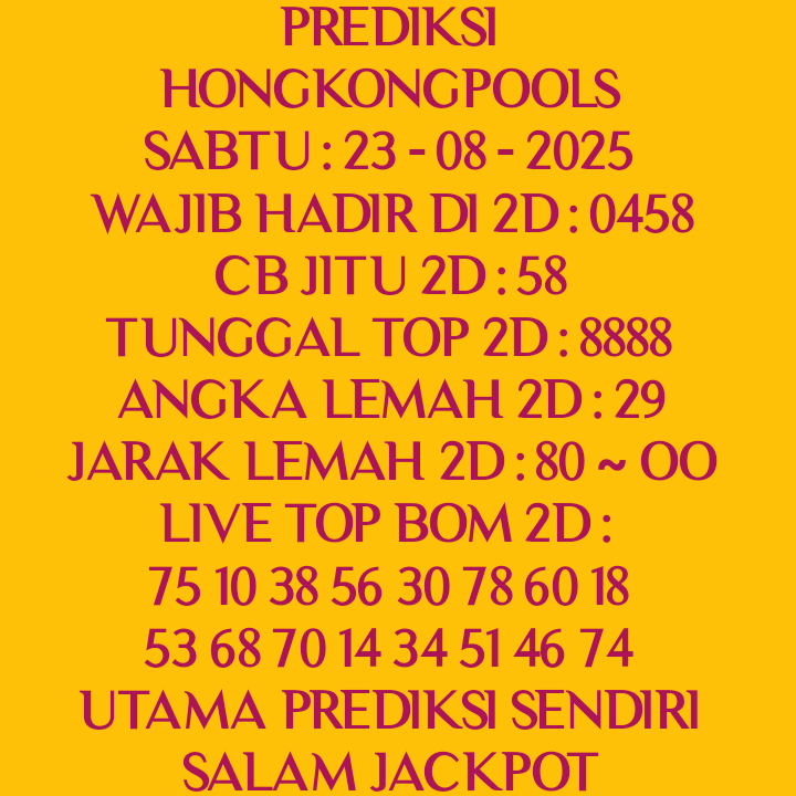 Prediksi Ini Berubah secara otomatis sesuai hari dan result pasaran masing-masing. Untuk melihat prediksi sebelumnya klik tombol nomor hitam diatas