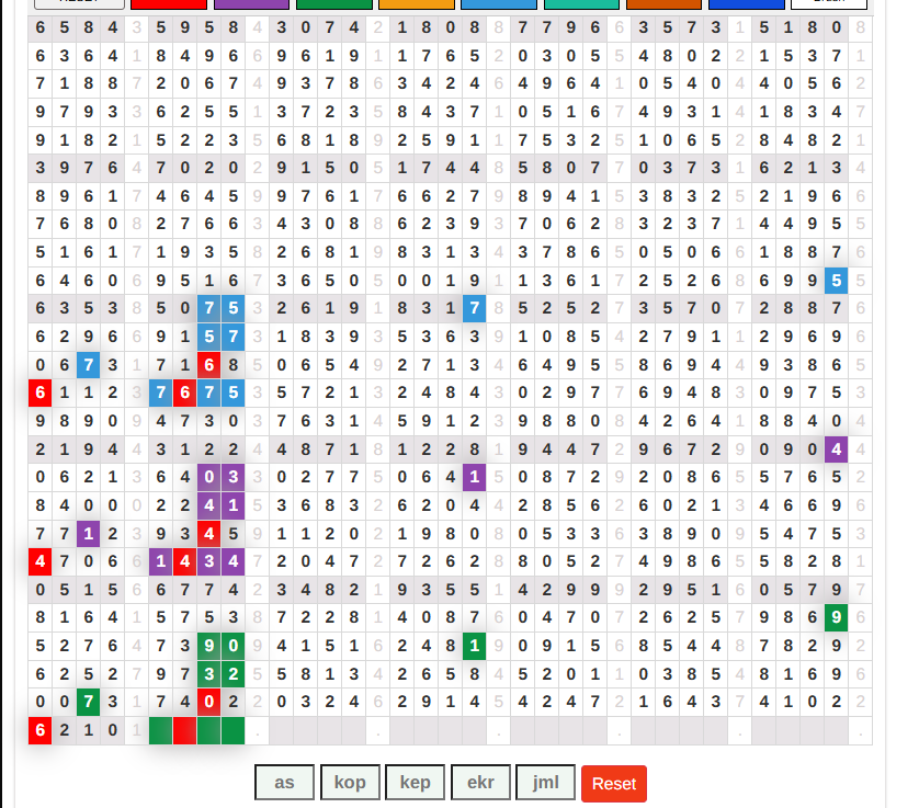 | Rumus Angka Mati berdasarkan kepala harian | 04 05 06 07 08 09 10 15 16 17 18 19 21 26 27 28 29 30 32 37 39 41 42 43 52 53 54 63 64 65 75 76 83 84 86 87 94 95 97 |