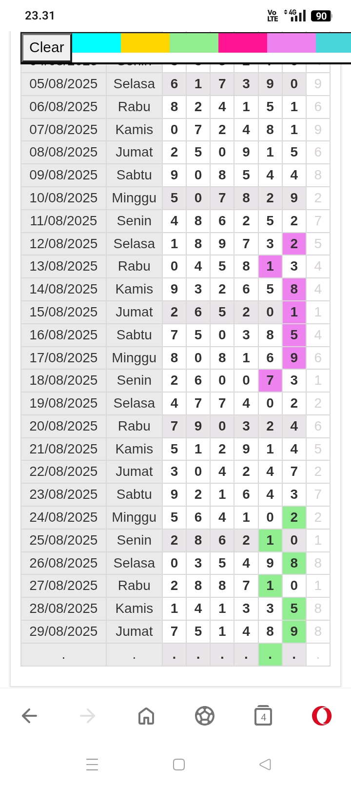 | Rumus Kontrol 4 berdasarkan kepala harian | 2345890 1236789 |