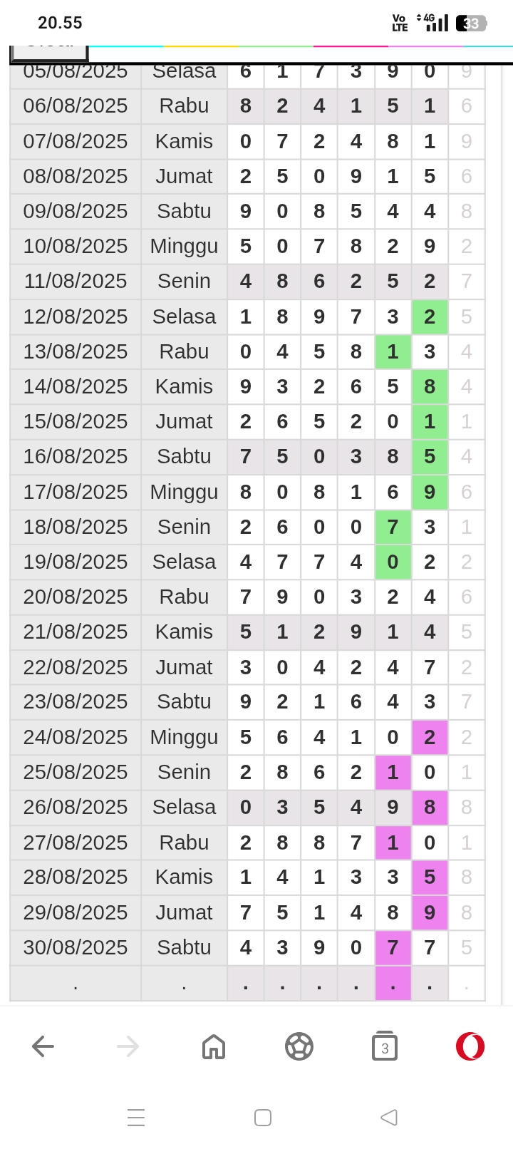Prediksi Ini Berubah secara otomatis sesuai hari dan result pasaran masing-masing. Untuk melihat prediksi sebelumnya klik tombol nomor hitam diatas