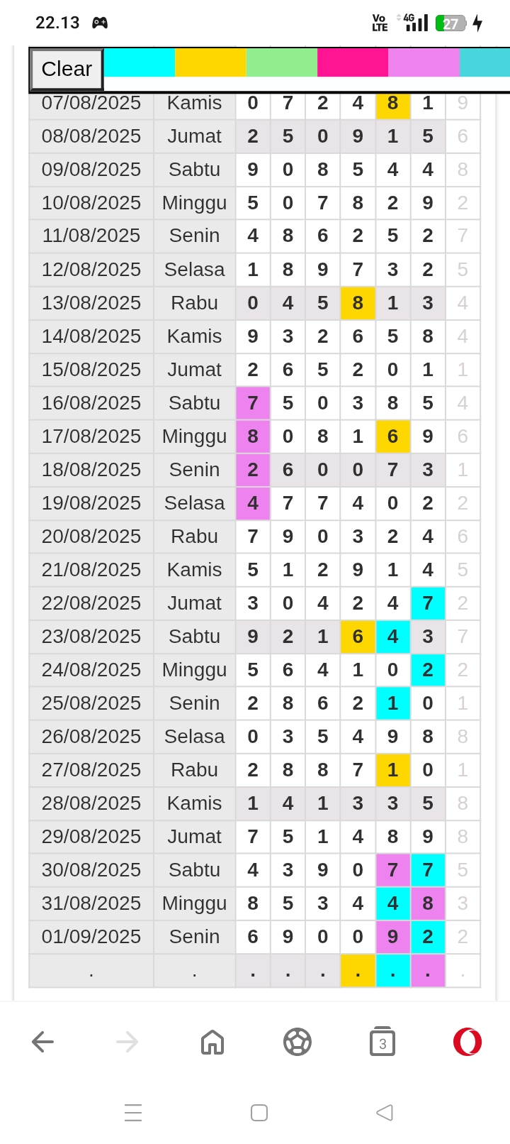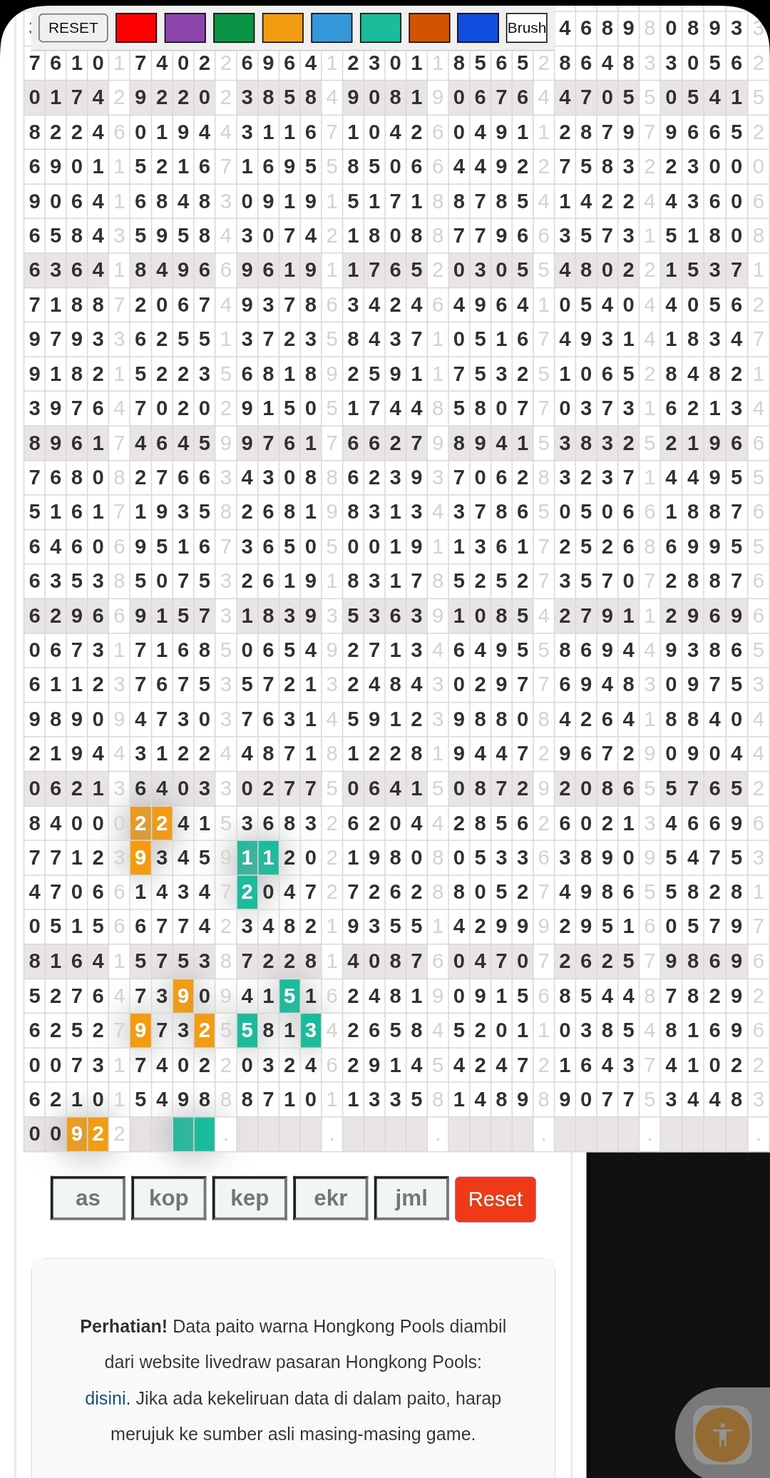 | Rumus Angka Mati berdasarkan kepala harian | 07 08 09 10 19 20 21 27 28 31 38 39 40 41 42 43 48 49 50 51 52 53 54 59 60 61 62 63 65 71 73 74 76 85 86 87 96 97 98 |