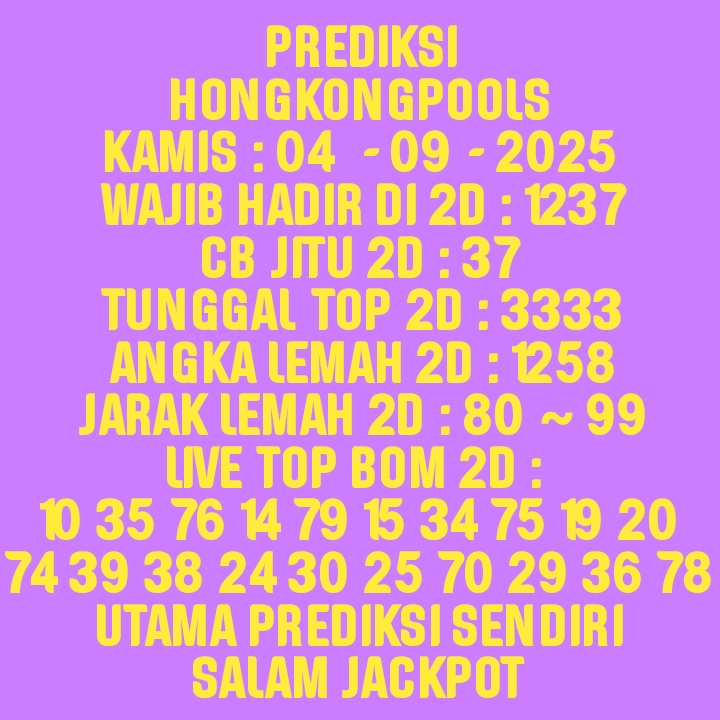 Selamat Bergabung kembali bersama angkanet dalam room Prediksi HK. Untuk kenyamanan dalam berprediksi, kami melarang adanya posting nomor WA, Web atau FB. Angkanet juga tidak pernah menjual prediksi, software, atau aplikasi togel lainnya. Berprediksilah secara damai dan elegan. Terima kasih telah menjadi pengunjung setia angkanet