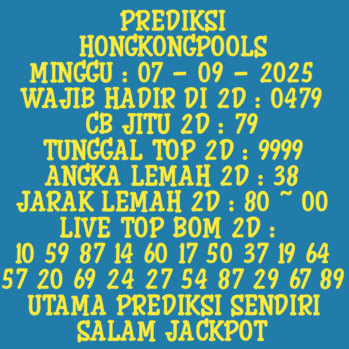 Prediksi HK Kamis, 18-12-2025 Merupakan Prediksi Otomatis yang menggabungkan Metode Kalender Togel Dengan LN Generator yang akurasi prediksinya sudah kita ketahui bersama. Jadi harap Maklum Jika kadang meleset Prediksi HK kita. Jadikan ini sebagai perbandingan saja dan tetap Utamakan karya sendiri