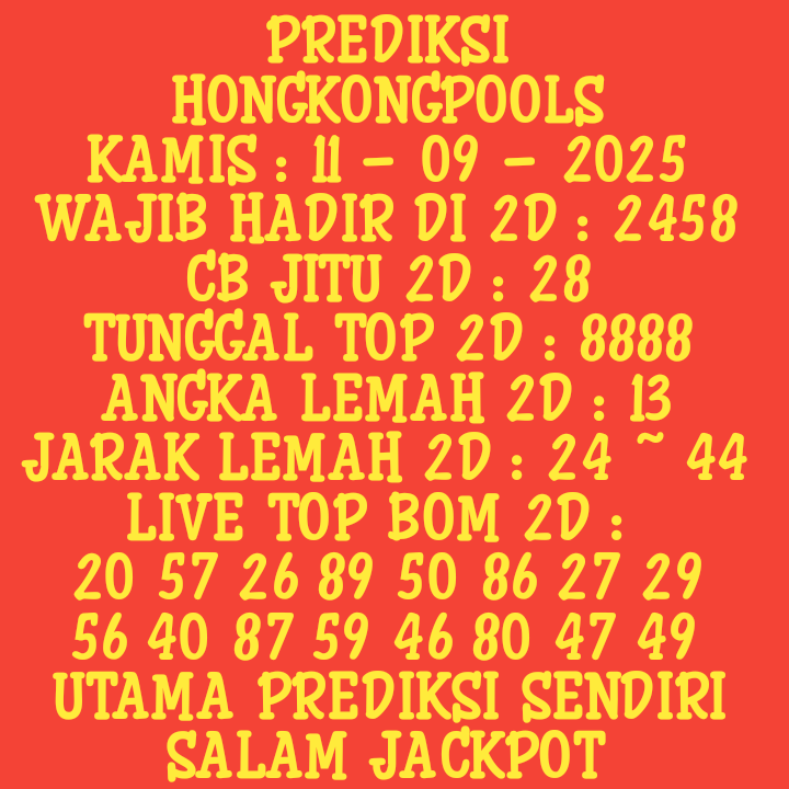 Prediksi HK Senin, 22-12-2025 Merupakan Prediksi Otomatis yang menggabungkan Metode Kalender Togel Dengan LN Generator yang akurasi prediksinya sudah kita ketahui bersama. Jadi harap Maklum Jika kadang meleset Prediksi HK kita. Jadikan ini sebagai perbandingan saja dan tetap Utamakan karya sendiri