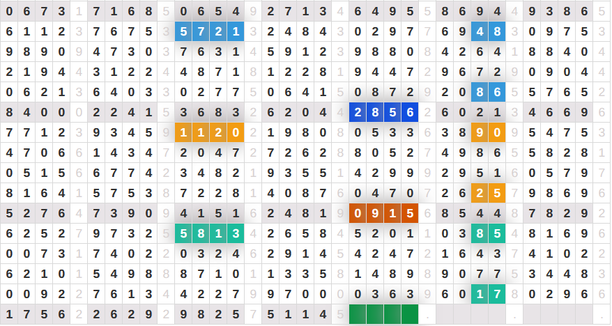 07*16*25*34*43*61*70*79*88*97