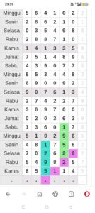 | Rumus Angka Mati berdasarkan kepala harian | 04 05 06 07 09 10 15 17 18 20 21 29 30 31 32 41 42 43 53 54 61 62 64 65 72 73 75 82 83 84 85 86 87 93 94 95 96 97 98 |