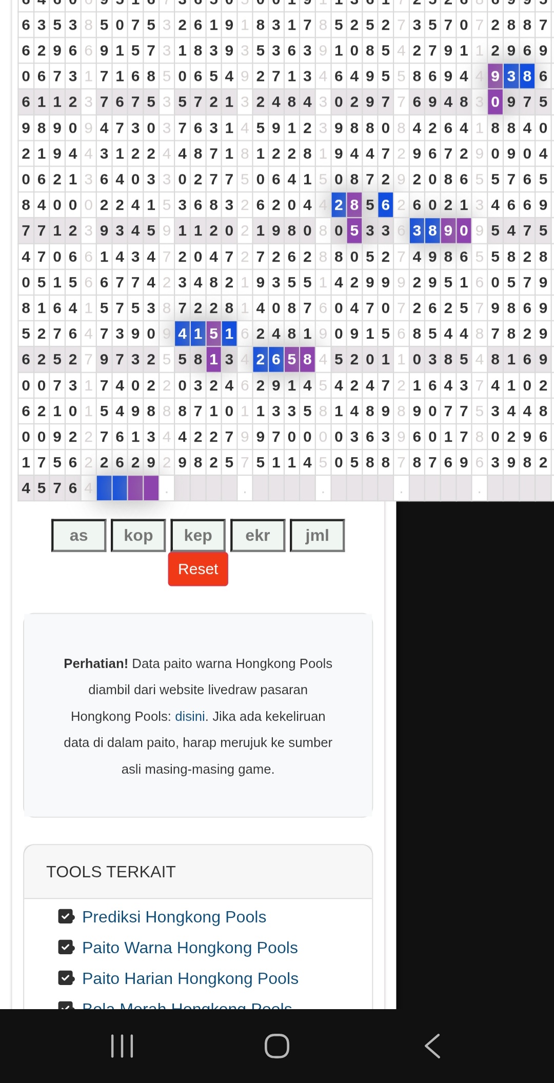 | Rumus Angka Mati berdasarkan kepala harian | 07 08 09 10 19 20 21 27 28 31 38 39 40 41 42 43 48 49 50 51 52 53 54 59 60 61 62 63 65 71 73 74 76 85 86 87 96 97 98 |