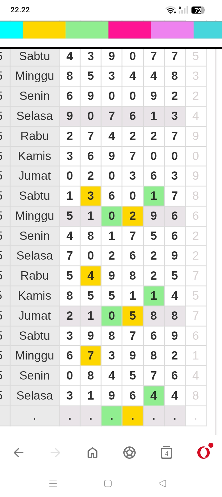 | Rumus Kontrol 4 berdasarkan kepala harian | 1456890 2345789 |