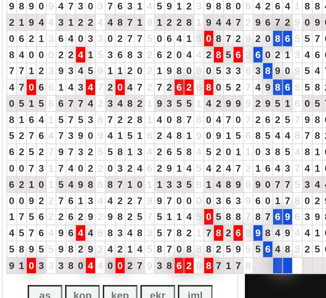| Rumus Angka Mati berdasarkan kepala harian | 04 05 06 07 09 10 15 17 18 20 21 29 30 31 32 41 42 43 53 54 61 62 64 65 72 73 75 82 83 84 85 86 87 93 94 95 96 97 98 |
