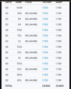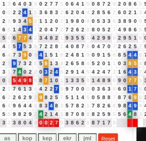 | Rumus Angka Mati berdasarkan kepala harian | 04 06 07 09 10 18 19 20 21 29 30 31 32 42 43 50 51 53 54 61 62 64 71 72 73 74 75 76 82 83 84 85 86 87 93 94 95 96 98 |