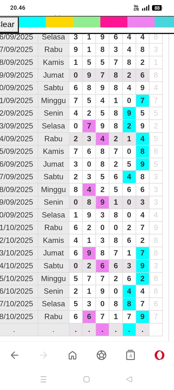 | Rumus Kontrol 4 berdasarkan kepala harian | 2346789 1235670 |