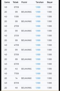 | Rumus Angka Mati berdasarkan kepala harian | 04 05 06 07 09 10 15 17 18 20 21 29 30 31 32 41 42 43 53 54 61 62 64 65 72 73 75 82 83 84 85 86 87 93 94 95 96 97 98 |