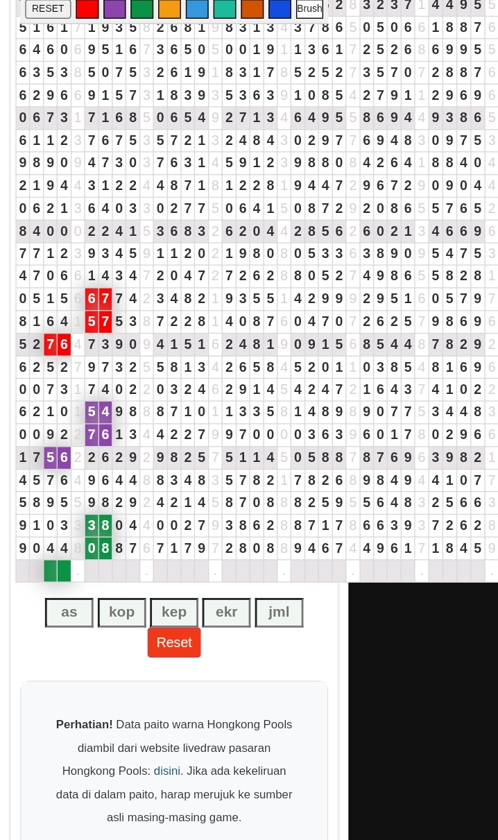 | Rumus Angka Mati berdasarkan kepala harian | 04 05 06 07 09 10 15 17 18 20 21 29 30 31 32 41 42 43 53 54 61 62 64 65 72 73 75 82 83 84 85 86 87 93 94 95 96 97 98 |
