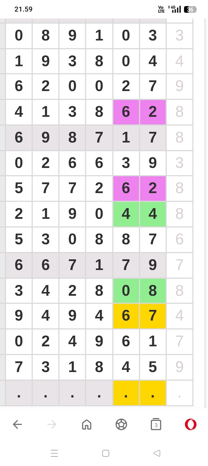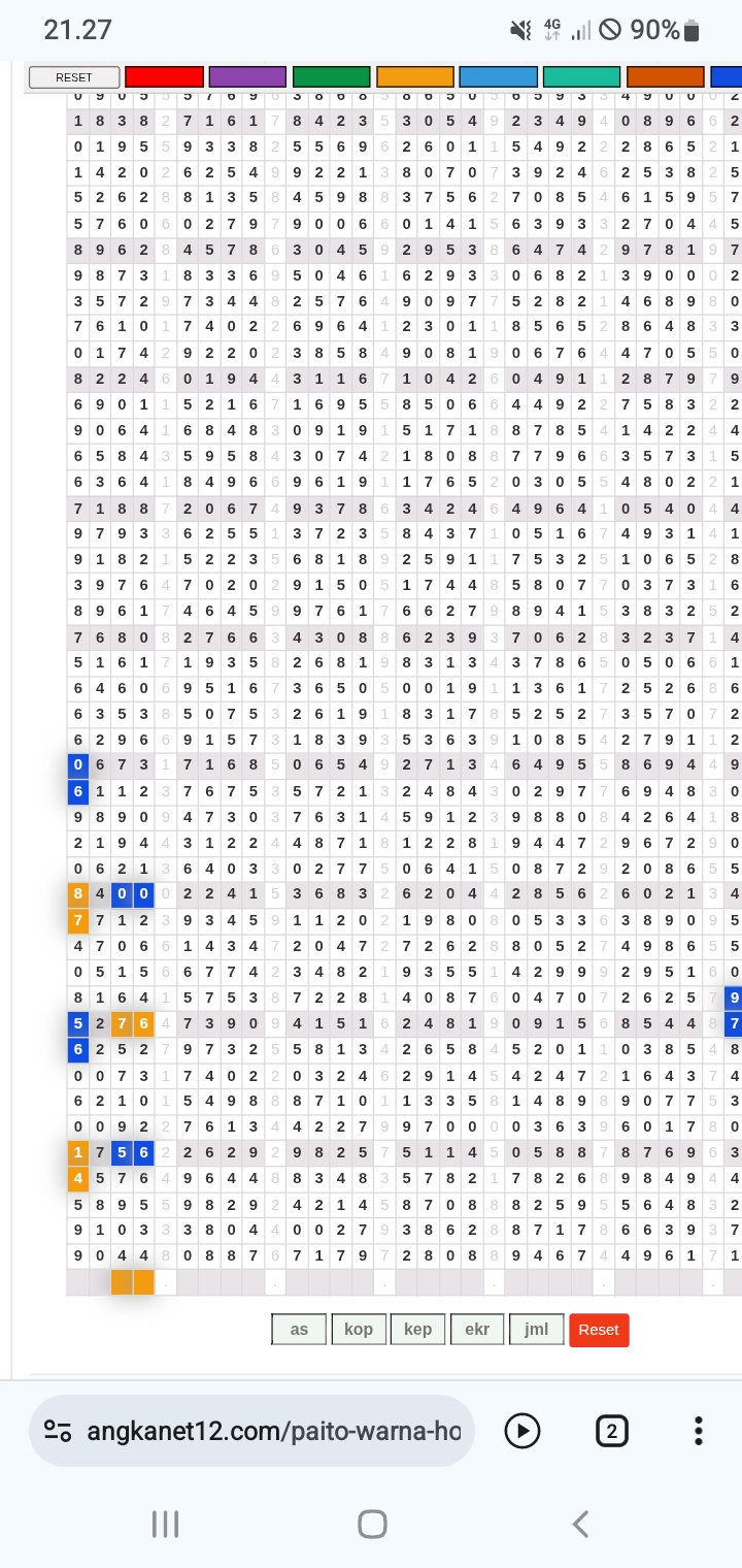 | Rumus Angka Mati berdasarkan kepala harian | 04 05 06 07 09 10 15 17 18 20 21 29 30 31 32 41 42 43 53 54 61 62 64 65 72 73 75 82 83 84 85 86 87 93 94 95 96 97 98 |
