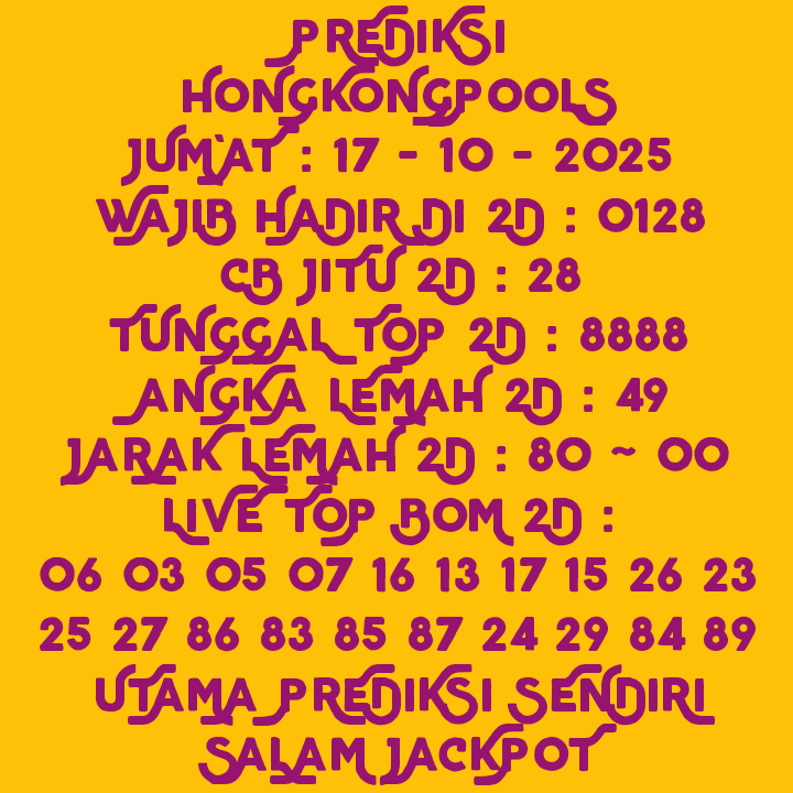 Prediksi Ini Berubah secara otomatis sesuai hari dan result pasaran masing-masing. Untuk melihat prediksi sebelumnya klik tombol nomor hitam diatas