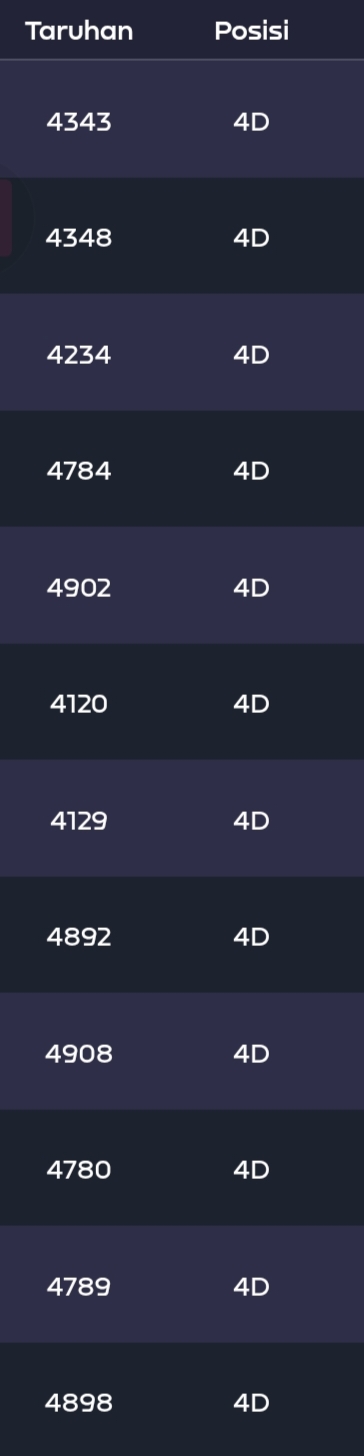| Rumus Angka Mati berdasarkan kepala harian | 07 08 09 10 19 20 21 27 28 31 38 39 40 41 42 43 48 49 50 51 52 53 54 59 60 61 62 63 65 71 73 74 76 85 86 87 96 97 98 |