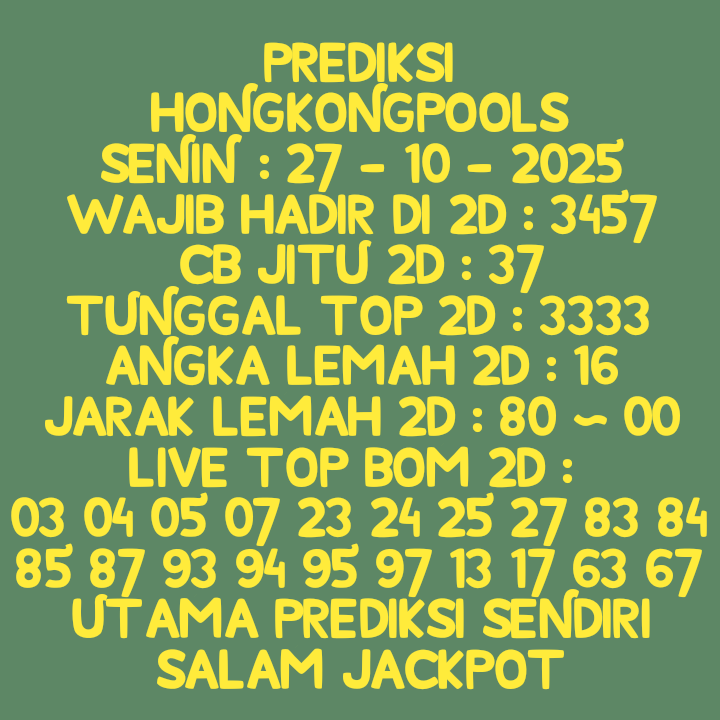 Prediksi Ini Berubah secara otomatis sesuai hari dan result pasaran masing-masing. Untuk melihat prediksi sebelumnya klik tombol nomor hitam diatas