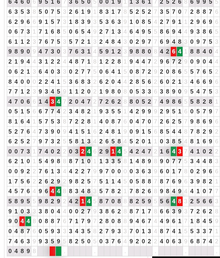 | Rumus Angka Mati berdasarkan kepala harian | 04 05 06 07 08 09 10 15 16 17 18 19 21 26 27 28 29 30 32 37 39 41 42 43 52 53 54 63 64 65 75 76 83 84 86 87 94 95 97 |