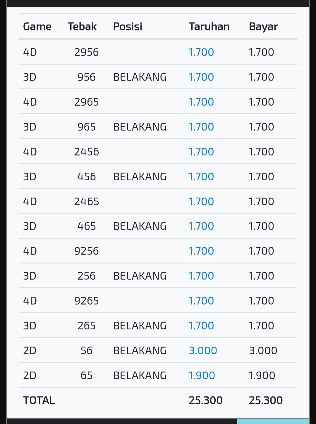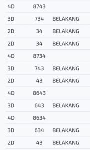 | Rumus Angka Mati berdasarkan kepala harian | 04 05 06 07 08 09 10 15 16 17 18 19 21 26 27 28 29 30 32 37 39 41 42 43 52 53 54 63 64 65 75 76 83 84 86 87 94 95 97 |