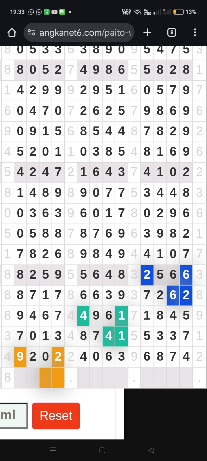 | Rumus Angka Mati berdasarkan kepala harian | 07 08 09 10 18 19 20 21 31 32 38 39 40 42 49 50 51 52 53 54 59 60 61 62 63 64 65 71 72 73 74 76 82 84 85 87 96 97 98 |
