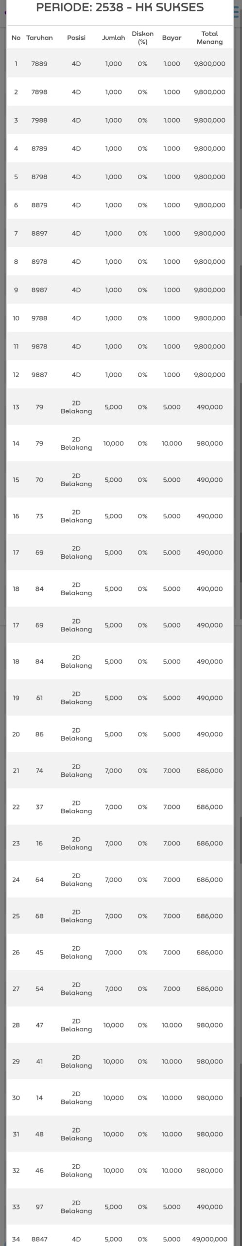 Prediksi HK Sabtu, 20-12-2025 Merupakan Prediksi Otomatis yang menggabungkan Metode Kalender Togel Dengan LN Generator yang akurasi prediksinya sudah kita ketahui bersama. Jadi harap Maklum Jika kadang meleset Prediksi HK kita. Jadikan ini sebagai perbandingan saja dan tetap Utamakan karya sendiri