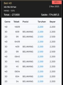 | Rumus Kontrol 2 berdasarkan Ekor harian | 5798246 5678902 3579286 |